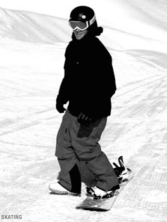 from CASI reference guide 當腳上繫著雪板,要在平地上移動時,我們需要藉由後腳在雪地上推動板子,讓我們可以前進。這時需要學習如何平地滑行(skating)。 1.身體站直放鬆。 2.讓兩邊肩膀跟雪板的頭尾平行。 3.抬起頭,眼睛看向要前進的方向。 4.前腳微彎,將身體重量放在前腳。 5.可以將後腳放在板子前面或後面的雪地上,並且靠近前腳。 6.後腳往後一推,讓前腳與雪板在地面上向前滑動。向上與向下攀登