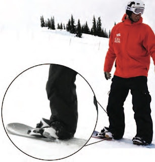 from CASI reference guide 請記住"BBP"這個名詞,這是往後課程的基礎,所有的滑行都需要建立在良好的、平衡的身體姿勢上。 正確的BBP應該 1.身體放鬆,下半身微微地彎曲 2.兩隻手輕鬆地垂放在身體的兩側 3.將身體重量平均放在兩隻腳上,重心保持在板子中間 4.讓兩肩保持跟板子頭尾平行的方向 5.頭轉向肩膀,臉對著板頭的方向,眼睛看向遠方前進的方向