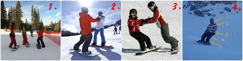 簡單將學習滑雪的過程分成4個階段: 1.滑雪前應注意的安全事項,滑雪裝備的介紹及著裝。 2.雪板上自然站姿,單腳滑走,滑行中平衡、轉向,雙腳雪面中站立,正背面直滑降,正背面落葉飄。 3.上下纜車,強力落葉飄,C型轉彎。 4.S型轉彎 學會落葉飄就可以克服全部的地形,但還不能稱得上滑雪,至少要學會第4階段的S型轉彎,才能享受滑雪的樂趣。 要完整學會4個階段所花費的時間,會依個人學習狀況而不同,但通常需要3-5天不等。到國外滑雪其實機票是最高的開銷,因此時間就變得很重要。 一般跟團的滑雪行程是5天滑3天,在教練指導下,3天才差不多學會S型轉彎,若是自學的話有可能會拉長學習時間,雖然省了教練費但其實不太划算呢。 自學容易乎略的事