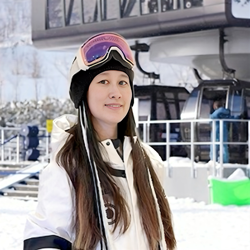從引領美學風潮的企業家,到如今手持國際教練執照CASI Level 1 單板滑雪教練的滑雪者,Arum 將過往事業中對細節的極致追求與細膩觀察,完美融入她的教學之中。她堅信,所有流暢的滑行都源自於一個穩定且正確的基礎姿態。因此,她的課程極度重視基本功的建立,能精準地洞察學員的姿勢盲點,並提供有效的矯正建議。