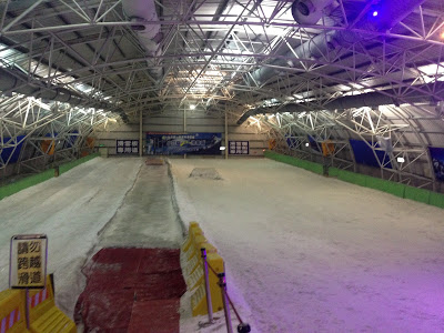 小叮噹滑雪場基本上是一個室內的人造雪滑雪場,不論一年四季天氣好壞都可以滑雪,雪況及雪質比日本的人造雪都還硬,比較接近韓國雪場的人造雪況。可大致上分為兩區,基本上西側區(35~45%)遊憩區主要為滑冰梯及輪胎區,東側區(55~65%)全山都是綠線,有1~2跳台穿插其中。雪場沒有T-bar或是纜車,上坡都需要拆板子用走路的。雪道介紹