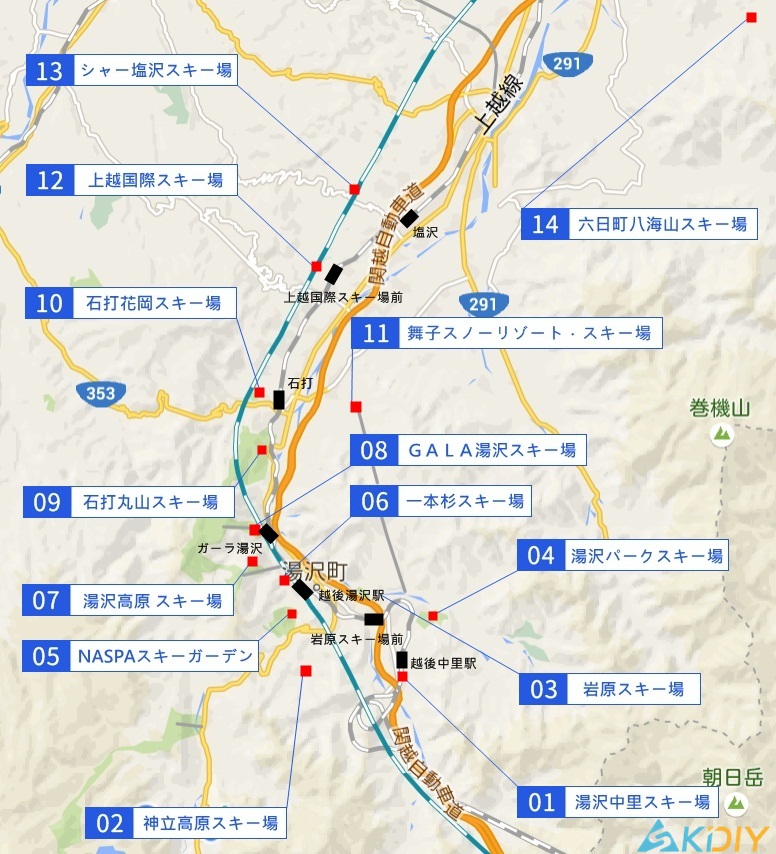 日本湯澤 ( Yuzawa ),是一個耳熟能詳的知名滑雪地區,號稱日本雪之鄉,每當冬季來日本滑雪時,當新幹線或巴士穿越山脈抵達湯澤時,往往會聽到大家驚呼的聲音,放眼望去,鐵軌外平原已經堆滿雪。湯澤群山圍繞著一個交通要道,就是越後湯澤站,周遭有很多知名的雪場,最方便的是新幹線營運的雪場 Gala,可以繼續坐往下一站,出站就抵達雪場入口。 湯澤附近還有很多雪場,本區有最著名的 Big Mountain (GALA湯沢スキー場、湯沢高原 スキー場、石打丸山スキー場組成 ),往北邊則有上越国際スキー場,中間還有神立高原スキー場、岩原スキー場、湯沢パークスキー場、NASPAスキーガーデン、石打花岡スキー場、シャー塩沢スキー場、六日町八海山スキー場、湯沢中里スキー場、一本杉スキー場、舞子スノーリゾート.スキー場等 14 座大大小小雪場組成。![]()