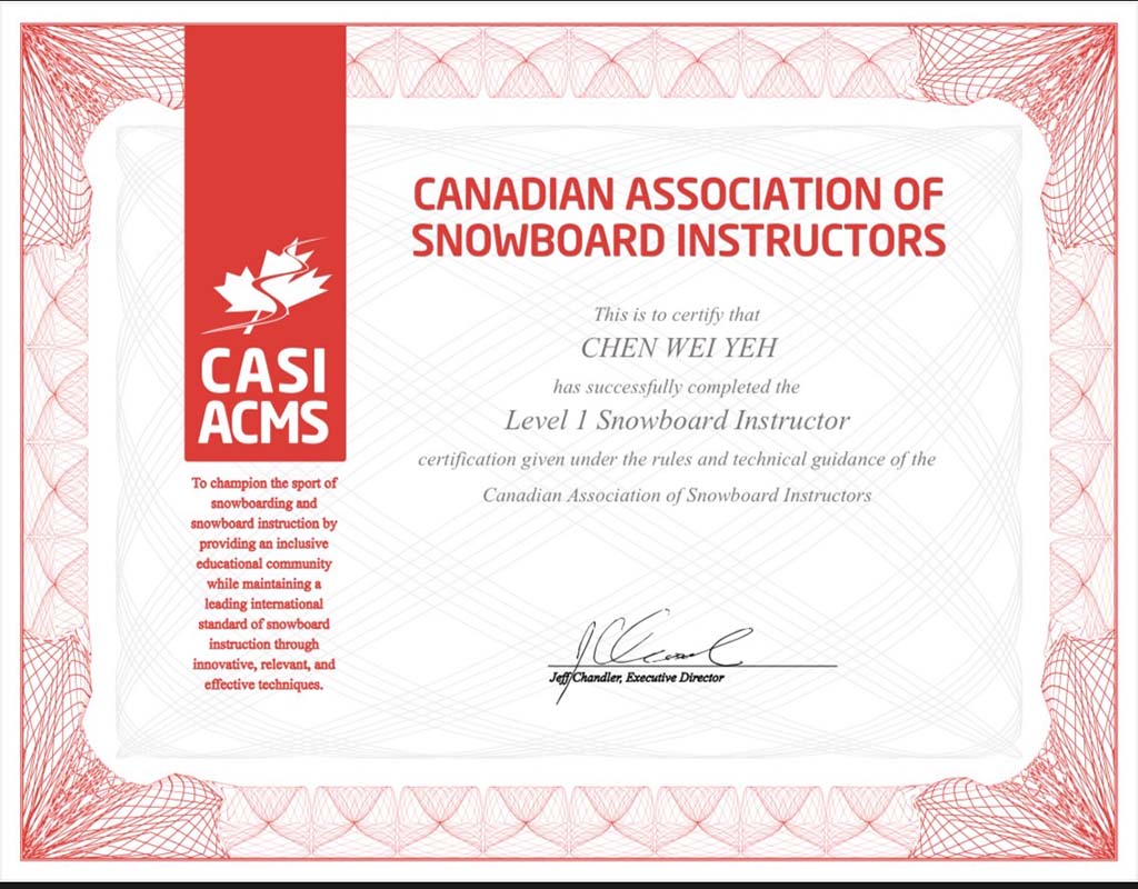 2015年12/05至2016年4/10 白馬栂池,白馬岩岳,白馬五龍,白馬八方,白馬cortina ,白馬乘鞍 ,白馬47, 共120天 2016年11/12~11/22 中國萬龍滑雪場 紐西蘭NZSIA培訓及考試 10天 2016年12/10~12/14 白馬五龍滑雪場 美國PSIA研習考試 5天 2016年12/16~2017年3/11 輕井澤,北海道留壽都,苗場,神樂,白馬等 共計86天 2018年12/13~2019年3/8 越後湯澤區,苗場,神樂,野澤等雪場教學 共計84天 2019年12/12~2020年2/28 越後湯澤區,苗場,神樂,野澤等雪場教學 並在同年3月順利考取到CASI LEVEL 2進階滑雪指導員執照 共計80天 2020-2021. 疫情期間無法前往日本 全年皆留在台灣持續進行滑水教學 2021-2022 疫情期間無法前往日本 全年皆留在台灣持續進行滑水教學 2022年12/12~2023年3/8 越後湯澤區,苗場,神樂,野澤,北海道kiroro,北海道旭岳,北海道富良野等雪場教學 共計87天