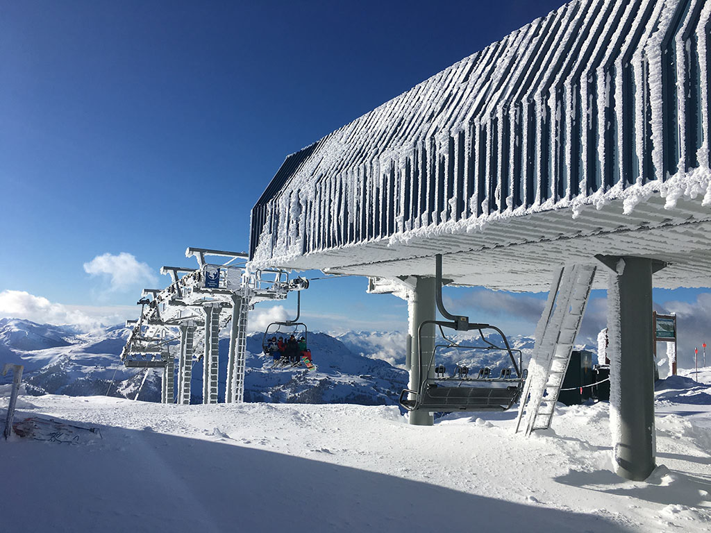 惠斯勒纜車山頂站就是奧運五環標誌的地方,叫做 Roundlehouse ,也就是CSIA LV1 考試報到的地方(ps. CSIA LV2 集合地點一般是在山下base附近) Roundlehouse 旁邊有一個大的建築物有紅色的大